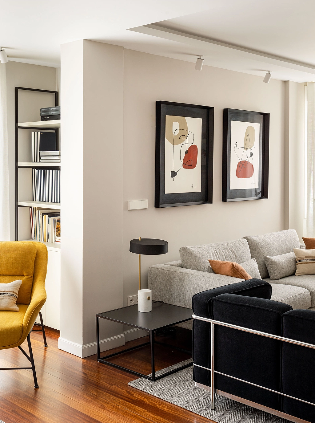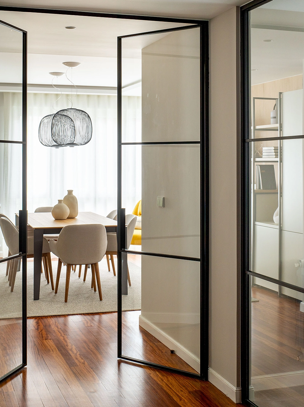 Esta disposición, junto con una campana de techo que no entorpece la visión, favorece a la relación de los espacios de trabajo y reunión, permitiendo a su vez una comunicación fluida entre los miembros de la familia.