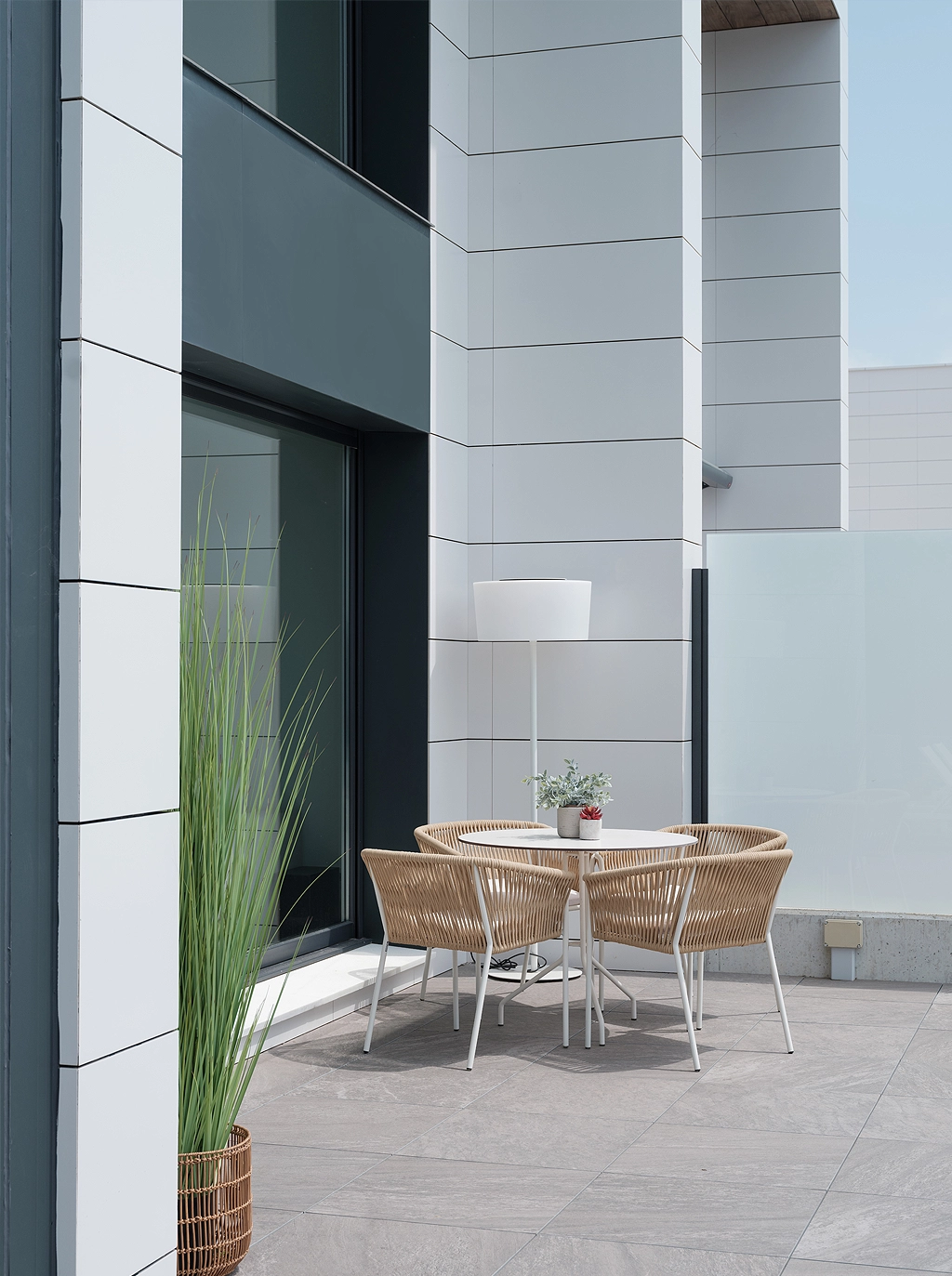 Nos encontramos ante una vivienda de una sola planta y grandes ventanales que inundan el espacio y dan paso al exterior. Un proyecto de estilo minimalista, con un concepto abierto de las zonas comunes.