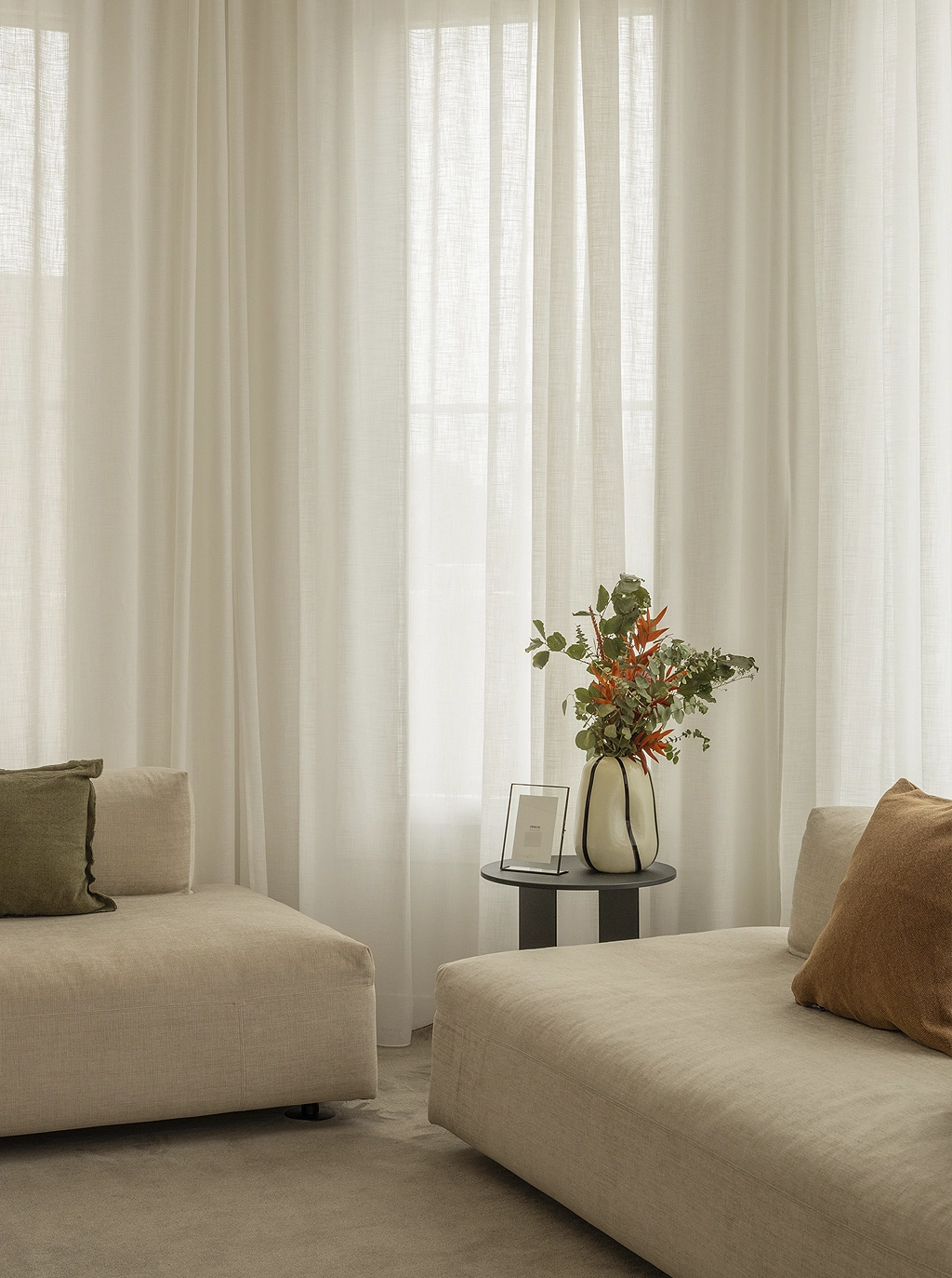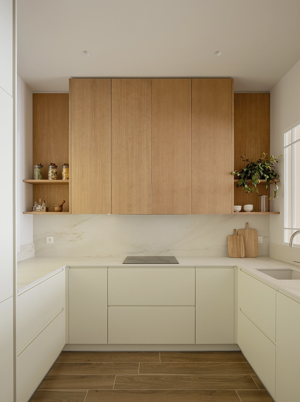 Casa ZUBI se define por una estética neutra y atemporal. Los tonos suaves — blancos, beige, y madera natural — dominan los espacios, creando una atmósfera tranquila, elegante y acogedora. Cada ambiente fue diseñado por Deca Estudio para ofrecer calma y equilibrio, donde la luz natural resalta la pureza de los materiales y la sencillez de las formas.